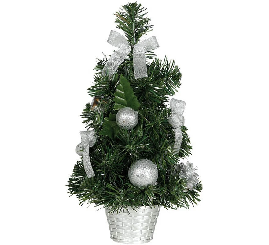 Arbre de Noël avec décoration Argent et Pot 40 cm. Idéale comme décoration pour la Fête de Noël. Découvrez-vous un e-commerce où vos achats de Noël auront un touche magique!