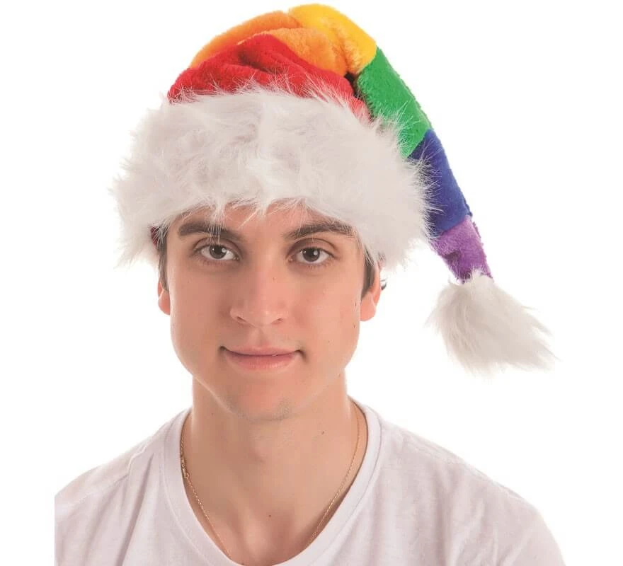 Chapeau de père noël arc-en-ciel. Parfait au moment de Noël. Achetez en toute sécurité et confiance dans DisfraZZes, une boutique en ligne conforme à toutes les réglementations de l’UE!