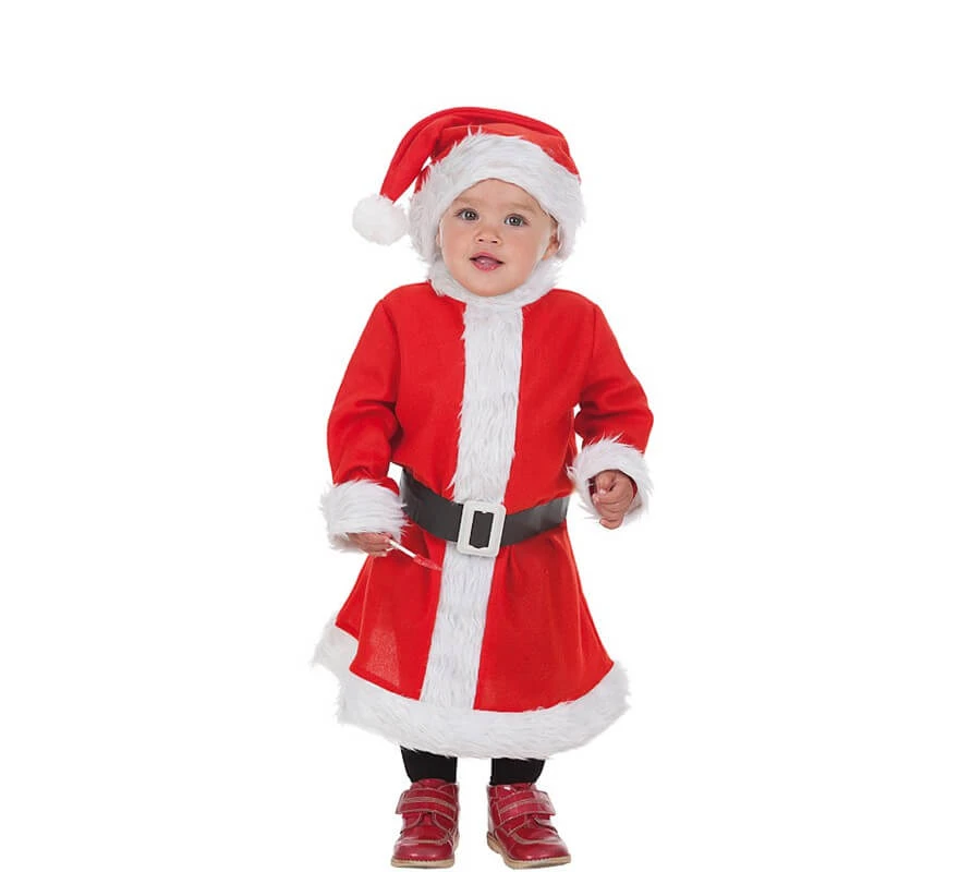 Déguisement Baby Mère Noël pour fille, en plusieurs tailles. Robe, ceinture et bonnet compris. Si vous souhaitez en savoir plus sur la taille du déguisement, veuillez consulter notre Guide des Tailles. Parfait pour les Fêtes de Noël. FABRIQUÉ EN ESPAGNE. N’oubliez pas que vous avez 14 jours pour vous faire rembourser.
