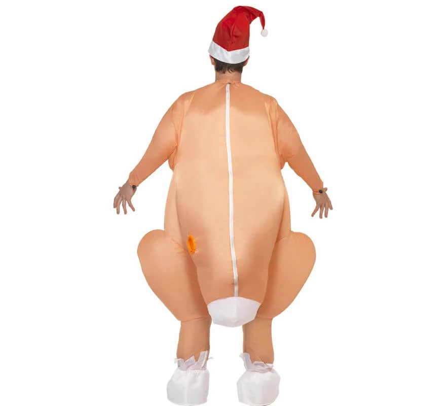 Déguisement de Dinde de Noël Gonflable pour homme. Taille unique pour homme. Ce déguisement unique et de haute gamme se compose d’une combinaison gonflable (avec un ventilador) et d’un bonnet de Père Noël. Ce costume est parfait pour vous déguiser lors des fêtes de Noël, le Carnaval et les soirées déguisées.